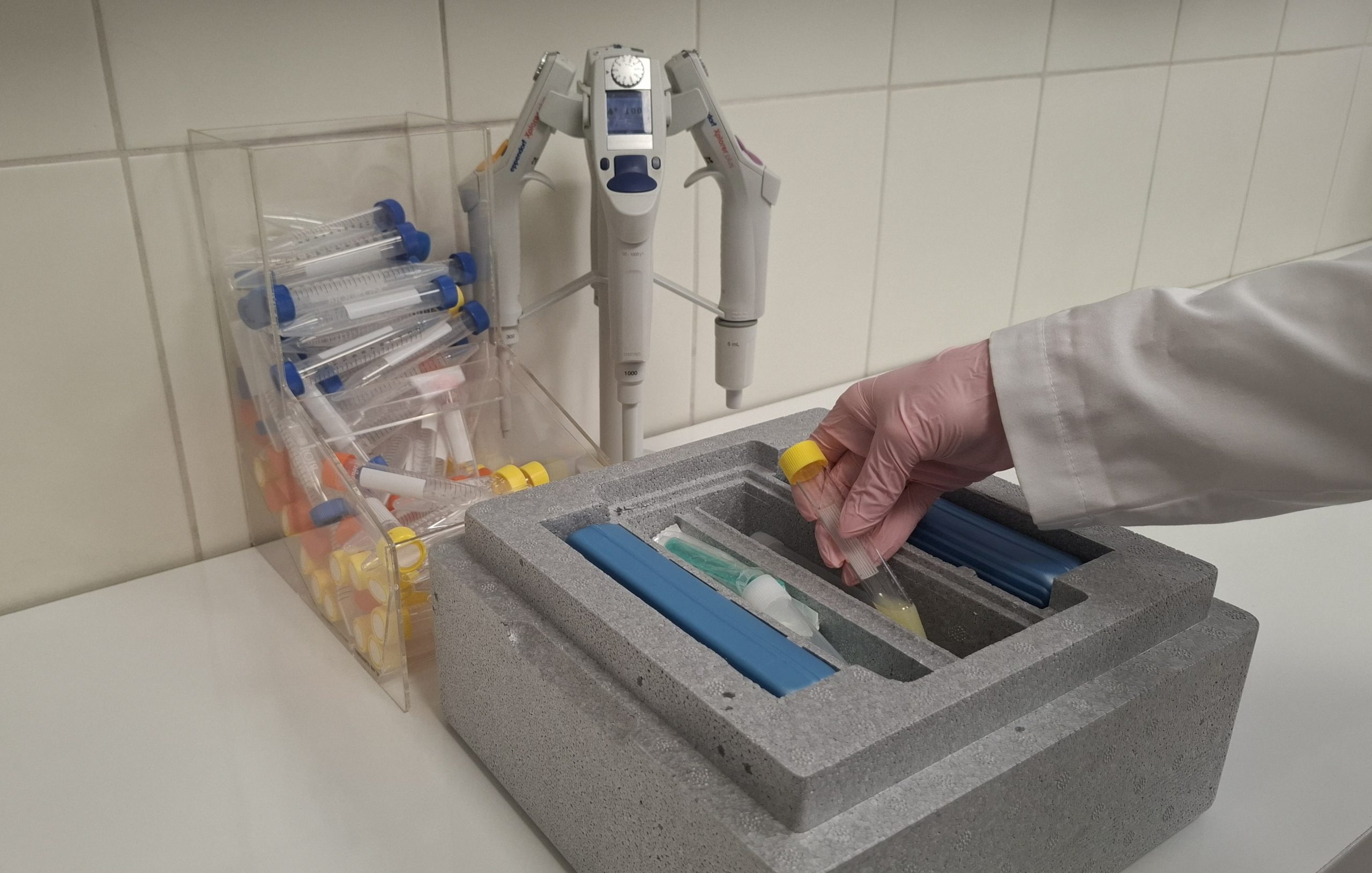 Nasienie po odwirowaniu i zabezpieczaniu w odpowiednim rozcieńczalniku jest stopniowo schładzane zgodnie z procedurą opracowaną w centrum i przechowywane w temperaturze 4 °C. Każda porcja nasienia przechowywana w formie schłodzonej jest oznakowana w sposób zapewniający pełną identyfikowalność materiału zgodnie z obowiązującymi przepisami prawa Unii Europejskiej (Rozporządzenie Delegowane Komisji UE 2020/686). Oznakowana próbka z materiałem biologicznym zawiera informacje takie jak: datę pozyskania  materiału biologicznego, rasę i dane identyfikacyjne samca (mikrochip) oraz numer rejestracyjny centrum. Nasienie jest wysyłane do odbiorcy w termoboksie transportowym z wkładami chłodzącymi zapewniającymi zachowanie  temperatury 4 °C przez 48 h.