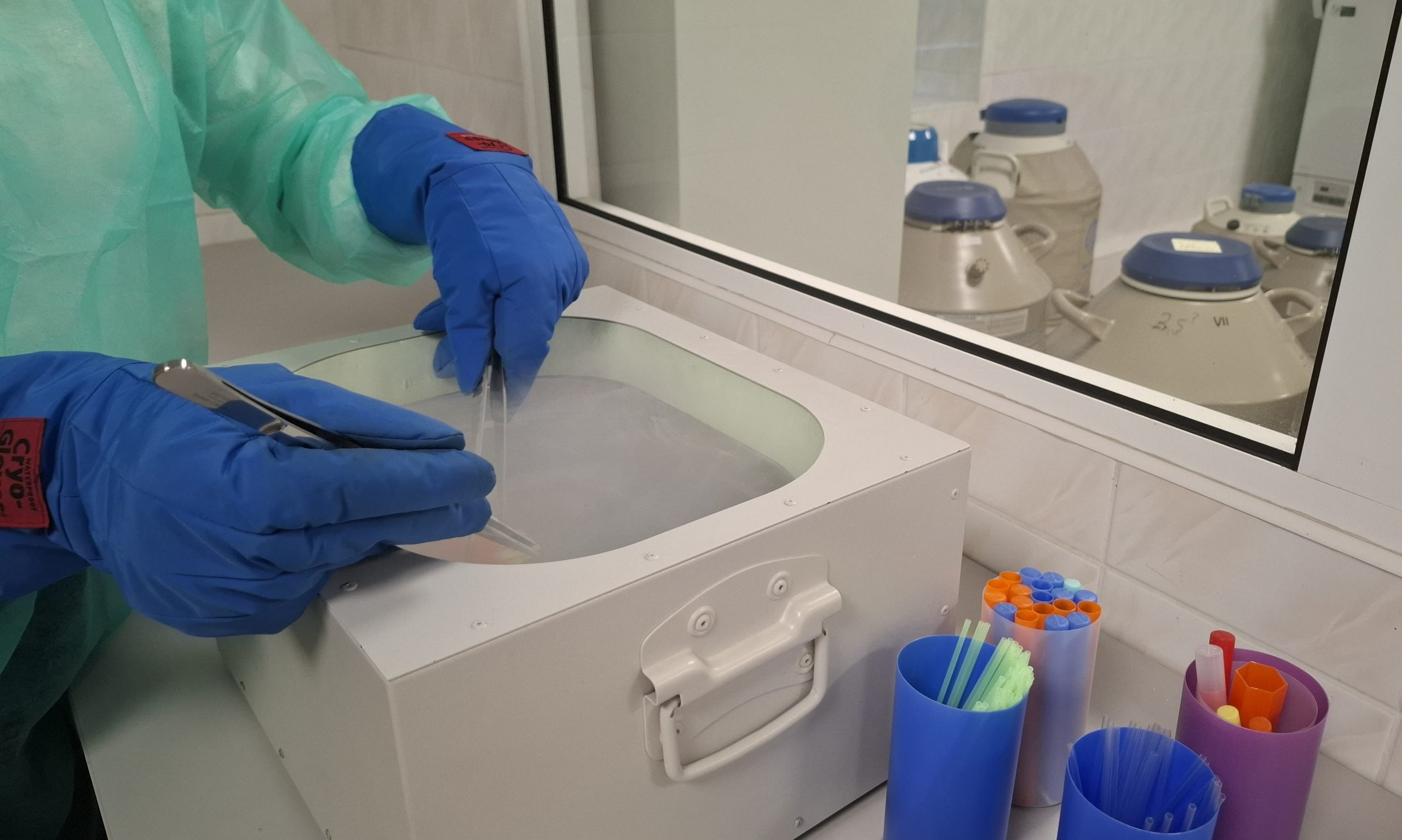 Nasienie przeznaczone do długoterminowego przechowywania poddawane jest wieloetapowemu procesowi mrożenia, pozwalającemu na przechowywanie materiału biologicznego w ciekłym azocie (-196°C) przez nieograniczony okres czasu. Nasienie jest konfekcjonowane w słomkach o pojemności 0,5 ml, opisanych przy użyciu drukarki IRIS (IMV, Francja), która umożliwia trwały i czytelny nadruk danych takich jak: numer, imię i rasa dawcy, kod kraju pochodzenia, numer centrum oraz datę pobrania nasienia, zapewniając pełną identyfikowalność materiału biologicznego. Każda słomka zawiera około 100 mln plemników. Zbiorniki kriogeniczne, w których przechowywany jest materiał biologiczny, podlegają ścisłej kontroli zgodnie z procedurami centrum. Nasienie jest wysyłane do odbiorcy w kontenerze transportowym z ciekłym azotem, który zapewnia utrzymanie kriogenicznych warunków podczas transportu.